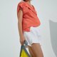 俐落百搭的小短褲,前片壓褶和下擺的織帶荷葉邊都非常修飾整體線條,穿起來也不會貼肌膚,是一件輕鬆好穿的單品喔!