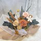 永生玫瑰、索拉花、永生葉材等,素材會依色系略有調整