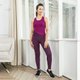 高貴紫紅長褲,緊身包覆內側大腿肉。