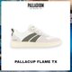 RETRO SPORT復古運動風潮席捲回潮 ! 以1970年代PALLADIUM復古運動鞋為藍本,打造全新PALLACUP復古運動鞋系列,這款運動鞋透過LWG金及皮革認證的高級柔軟真皮與麂皮接拼鞋面,搭配經典的火焰幾何圖像與配色,散發出濃濃的懷舊氛圍。