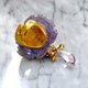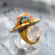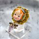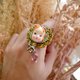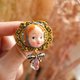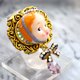 立體啡髮娃娃綴水晶寶石裝飾巴洛克雕花框黃銅戒指