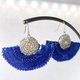 空洞にシルバーの彩色をしているビーズを合わせ、ネイビーを引き立たせました。