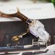 - 純手工特色能量水晶魔杖,由來自東歐拉脫維亞的天然麆鹿角製成,搭配白色水晶柱體,滾上迷你白水晶柱與天使光環迷你水晶柱,吊墜設計選擇紫水晶,第三眼符號與天使光環珠子,專為啟發靈性第三眼而設計,它將是您祭壇上的最佳工具。