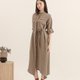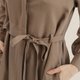 - 特殊設計:不對稱下擺斜裁設計、俐落小立領、腰間不對稱繩道、立體造型袖、兩側具口袋。