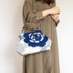 軽く丈夫な帆布生地に京都の染め屋「京美染色」のオリジナル柄をモダンな配色と大胆な構図でがま口バッグにアレンジ。