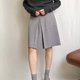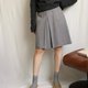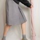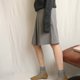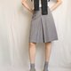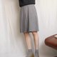 - 臺灣製古著學院風及膝麻灰抗皺箱摺裙