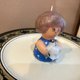 女の子が猫を抱っこしているキャンドル。