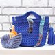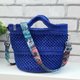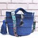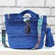 海军蓝色可持续手柄袋手工编织从棉绳农民可重复使用的杂货市场购物者手工定制袋与原始皮带52英寸和流苏。 高度为12英寸,宽度为13英寸,底部宽度为7,8英寸。 没有衬里。