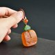 搭配和田玉碧玉雕刻如意紋樣,搭配點綴南紅瑪瑙圓珠製作珠扣,手工編制淺咖啡色線繩,製作精緻