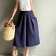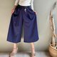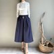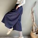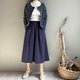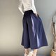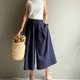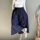 海洋假期/海軍藍壓摺中長寬褲裙100%棉/鬆緊褲頭