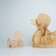 由木片組合而成的獨特立體感,雖然簡單卻帶有可愛的表情,並且能隨著觀看角度展現不同的形態。檜木溫潤的香氣與手感,對大人來說是一個療癒的「掌上小物」,而對孩子而言,則是一件安全又充滿溫度的小木玩具。