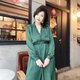 |花朵型大V領 / 鬆緊腰圍 / 手袖單顆釦