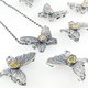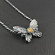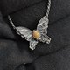 設計靈感源於蝴蝶的優雅與夢幻,以絲摺紋理半浮雕的質感配合純銀氧化的顏色深淺變化,展現蝴蝶飄舞的動感與活力。天然黃色系蛋白石,在光線下閃耀著橘紅色的油彩,有如灑落於林葉間的溫暖陽光.令人注目嚮往。