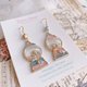 封入迷你鋯石木馬+古董玻璃小珠,可以搖動,令耳環也能和你有小互動!!