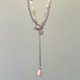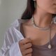- 材質:岫玉、珍珠、鈦鋼 尺寸:岫玉6*8mm、珍珠12*15mm 項鏈全長40cm+8cm