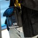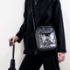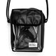 Zone 區域肩背小包,包包正面運用內層黑色球皮拼接而成,搭配透明布料襯托回收皮料質感,並製造包款的空間感。考量包包收納需求,具備螢幕防刮隔層和小物分類隔層,可方便攜帶隨身用品,並依據不同身形調整背帶長度。