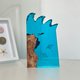 以環氧樹脂凝固魔鬼魚與潛水員的深海共舞,搭配天然木質底座,立體波浪雕刻逼真靈動,將奇幻海底世界化為桌面藝術品。