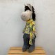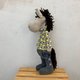 The horse is made of linen, stuffed with a high quality hygienic hollow fiber. The toy is made in technique of tight stuffing, which allows the toy to stand and sit on their own. Hands and feet are movable. The construction of the toy does not use metal parts or wire.