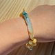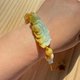 This bracelet is crafted in warm tones of golden yellow and soft green, creating a bright yet gentle palette.