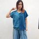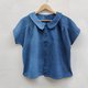 彼得潘領短袖靛藍紮染上衣。可愛的寬鬆設計,酷炫的靛藍染色圖案。