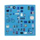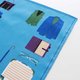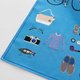 右側には、ネクタイや腕時計、パソコンなどのお仕事アイテム。左側には、自転車やカメラ、ギターなど趣味にまつわるアイテムが描かれています。 生地には光の加減で格子柄が見える、ブランドオリジナルのジャカード生地を使用しています。