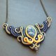 - Beautiful blue and yellow statement necklace is made using soutache embroidery technique. Materials: beads, seed beads, soutache cord. The back side is covered with leather. Light weight. Total round length is 17.7 inches (45 centimeters).
