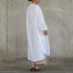 たっぷりとドレープを寄せたボリュームのあるロングシャツ。