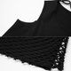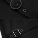 此款主面料採用針織打擊布,彈力效果很好,塑造緊致身形 。拼接菱形網布,前幅設有金屬日字扣,可做調節作用。肩部鏤空與下擺斜角設計相呼應,打破平衡。脖圈是可拆卸的,設有金屬刻字punk四合扣的小細節,可多種搭配。