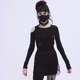 龐克鎮魂曲祭司拼接連身裙 / 附脖圈 - 洋裝/連身裙 - 其他材質 黑色