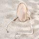 這款項鍊以天然白色淡水珍珠搭配銀色延長鏈,展現簡約與優雅的融合。白珍珠象徵純潔與溫柔,銀色鏈條延展出靈動與自由的線條,是情人節展現氣質的時尚之選。