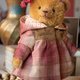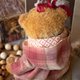For this charming coat, I chose American lightweight pink cotton. The coat is decorated with gathers and a hood. A bear in these clothes looks like a French romantic lady. The coat is easily fastened with 2 snap closures.