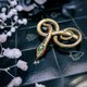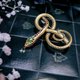 纏繞的身形十分優雅,鱗片紋路極細膩。細細的尾巴處是我覺得最可愛的地方。設計上有如小山峰的蛇脊,也栩栩如生地呈現,非常漂亮。頭與眼分別以瑪瑙與玉石妝點,更顯高貴。