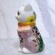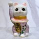 日本清水燒招財貓 色繪 紫地 秋草