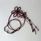 ☆トラブル防止のため、商品説明はご面倒でも 【必ず全て最後まで】お読みください。明らかにお読みで無いとわかるご注文はお受けできないことがあります☆ ☆商品説明を明らかにお読みで無いとわかるお問い合わせには対応しないことがあります☆ ☆この紐の色はかなり渋めの「えんじ色」です。ご覧の環境によって違う色に見える場合があるようです。ご注意を。この点についてお問い合わせ頂いてもお答えできません☆ 飾り結びのカチューム どんな色にもしっくりと馴染み、 落ち着いた雰囲気を添えてくれる「えんじ色」の紐にて、ひとつ。 (ご覧の環境によってえんじ色が実際より赤く見える可能性があるようです。実物はかなり渋く落ち着いたえんじ色です) あまり派手に主張しすぎない飾り結びを、二つ連ねて しとりと髪をおさえて 揺れるチェーンはアンティーク調カラー、 ビーズも深みがありながらそこまで派手ではなく しかし、よく見ると発色の面白い緑系のものを選びました 髪に、ワンポイント、和とも、洋とも?な不思議な雰囲気、 けれどもその存在の面白さには、 一旦、足を止めて、じっと見つめてみなければ気づかないのだ、 というくらいの「仕掛け」を 自らの装いに含んで出かけるということ、 ほんのりとした高揚。 誰か、応えるかしら、 応えてくれなかったとしても、と吹き鳴らしてみた旋律に、 期待せずかえってきたものは。 ☆このアクセサリーでは「飾り結び」という技法を用いています。「水引」や「組紐」とは全く異なるものですのでご注意ください。 ※飾り結びはとても繊細です。着脱時はゴム側を引っ張るようにし、飾り結びに力を加えないよう充分にご注意ください※ ※サイズのお直しがお受け致しません ※飾り結びの結び具合や紐の長さは写真と完全に一致するものではございません ※とても繊細なパーツを使っているのでお取扱いご注意ください。 飾り結び部分約400mm、ゴム部約100mm(収縮時) ※※※ ☆ギフトラッピング・再販売依頼はお引き受け致しません ☆パーツ交換・カラーバリエーション製作依頼及び一切のオーダーメイドはお引き受け致しません ☆金属アレルギーのある方は残念ですが購入をお控えください ☆繊細なパーツがありますのでお取扱いには充分お気をつけください ☆在庫数以上のお取引のご要望には対応いたしません ※※※ ☆お急ぎ・日時指定での発送は一切お引き受け致しません ☆お届け後のサイズお直しや、ご使用者様の過失による破損、また、配送中に起きた破損への修理のご依頼はお引き受け致しません ※※※ ☆お届け先が日本国内の場合は基本的に「定形外郵便」、それ以外の国・地域の場合は「EMS」で発送致します ☆「定形外郵便」の送達日数は天候その他の条件に左右されます。お尋ねいただいても具体的に算出不可能なためお答えできません ☆「定形外郵便」には追跡機能がないため弊ショップでは配送状況はお調べできません。ご自身で配達担当局へ直接お問い合わせください ☆「定形外郵便」には万一の事故・紛失の際の補償機能は付いておりません ☆「定形外郵便」は土日祝日には配達されません ☆「郵便台帳」にそのご住所の住人として記載されていない方には郵便は配達されません ------帰省先などのご住所を指定なさった場合 ------旧姓、通称、ペンネームなどを宛名として指定なさった場合 等の場合には配達はされませんのでお届け先のご住所に実際にお住いの方、すなわち郵便台帳に記載されている方のお名前を「○○様方」として記載の上、受取人様のお名前を付記する必要がございます ※※※ ☆度を越した迷惑行為が見られた場合には予告なく先々一切のお取り引きとお関わりをお断り致します☆ ※※※ ☆備考欄及びメッセージへ雑談・私信を記入しないでください ※※※ ☆当ショップはいわゆる「ワンオペ(1名のみによる運営)」ショップですので、極端に人員と時間が足りておりません。そのためメッセージ等のやり取りは最小限とさせて頂いております。いささか素っ気なくお感じの向きもあるかと思われますがご容赦ください。 ※※※ 2016.12.3.初出 2025.10.15. 再販売 nuta design