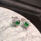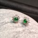冰綠翡翠蛋面耳釘 925純銀鑲嵌  | 天然A貨翡翠 | 送禮 - 耳環/耳夾/耳骨夾 - 玉石 綠色