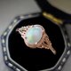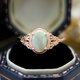來自澳洲原礦歐泊/蛋白石(非二層三層石),是澳洲國家級寶石,也是市場上最高單價的蛋白石。藏在歐泊/蛋白石裡的多彩夢幻世界,隨著光影變化絢麗如油畫,古典玫瑰金色戒台,更顯古典風味。