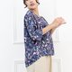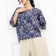 滿版植物七分袖上衣 / 深藍色 透氣舒適,春夏皆宜