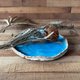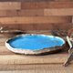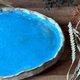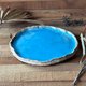 獨特風格的陶盤,以無規則造型、藍色盤面,經過高溫燒制,可盛食物,亦可為家居收納盤或裝飾。