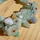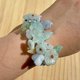 - Jade bracelet with a blooming lotus centerpiece, surrounded by leaves, blossoms, and a tiny pale purple goldfish. In light green, misty blue, and soft white tones, finished with a lotus pod charm.