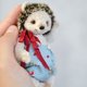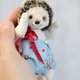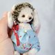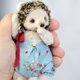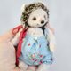 Tiny Hedgehog is created from german viscose and mohair and stuffed with wood sawdust. She is fully jointed with 5 cotter pins. She has a glass eyes.