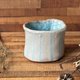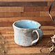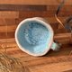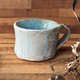 獨特風格的陶杯,以無規則造型、啞光藍白釉呈現,經過高溫燒制,可盛熱飲,亦可為家居裝飾。