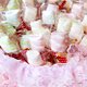 ● 五顏六色的迷你愛心鏟子搭配花捲造型棉花糖,鏟子諧音「產子」,