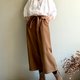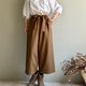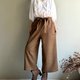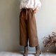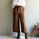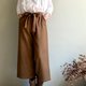 黃石公園/棕色輕毛料寬蝴蝶結綁帶9分寬褲