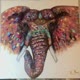 This original oil painting presents the majestic head of an elephant, front-facing and adorned with subtle decorative markings on the forehead. The ears unfold with colourful, rhythmic strokes in tones of blue, red, yellow, green, violet, and warm earth shades. These layered mosaic fragments create depth, light, and movement while maintaining a refined artistic balance.