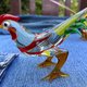 Each bird features a beautiful blend of rich red, yellow, and green glass, with elegant, hand-pulled clear glass tails. They are a perfect example of the masterful hot-sculpting technique.