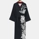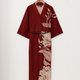 以和服為靈感設計的洋裝,呈現出優雅大方的日式廓形。選用具有厚度與高級感的布料製作,垂墜感佳且不易變形。無論是年末年初的節慶場合,或作為正式場合的替代晴れ着(盛裝)皆十分合適。整體以鐵線花圖案點綴,將細膩與華麗完美融合,散發出獨特的東洋魅力。
