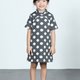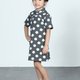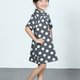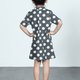 《媽媽與我》系列。 灰色和白色花紋點旗袍,由非常柔軟和有彈性的平紋針織面料製成。 這是一種舒適且易於活動的風格。 中後部隱形拉鍊開合。