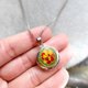 日本中古金屬彩色圓型牡丹圖案吊墜頸鍊項鍊高級二手古著珠寶首飾