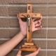 手工製作,使用來自聖地的原生橄欖木,配有堅固的底座,上面裝飾有精緻的銀色耶穌受難像,使其成為一件獨特的藝術品。底座設計使其可以輕鬆地放置在桌子、書架或祭壇上,成為祈禱和沉思的美麗焦點。