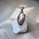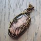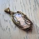 拉長石吊墜。線材為古青銅色藝術銅線。整體尺寸(長x寬)為60x25mm。